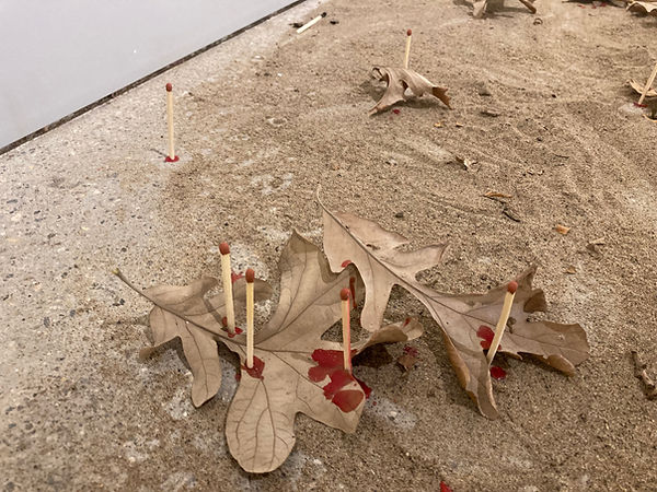 mississippi river sand, oak leaves, paraffin wax, strike on box matches